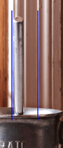 For this test I placed the cup with the Exacto knife about an equal distance from the camera and the window in the background. The camera was leveled. The Exacto knife was placed in the cup in such a manner that the top of the handle was angled towards the camera and so it appeared vertical in the camera.